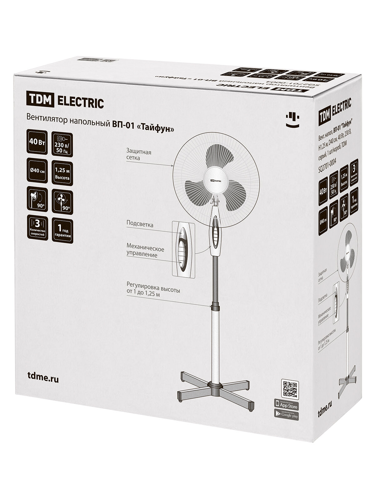 Вент. напол, ВП-01 "Тайфун" H1,25 м, D40 см, 40 Вт, 230 В, серый, 1 шт/короб, TDM интересное: