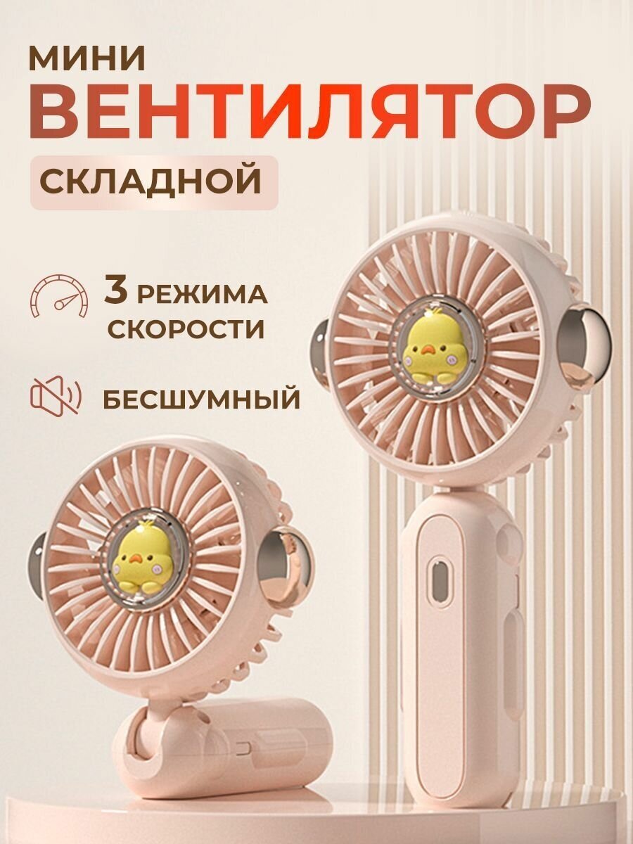 Портативный беспроводной мини-вентилятор ручной BlueStar 3 Speed Type - C, Kawaii кепка розовая