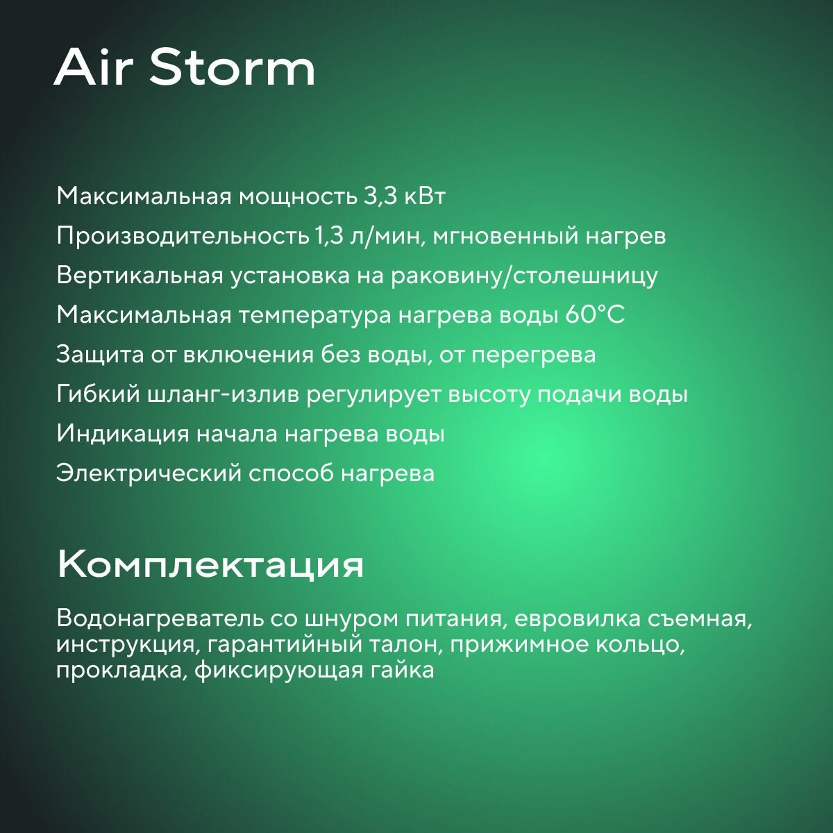 | Тип водонагревателя | проточный |