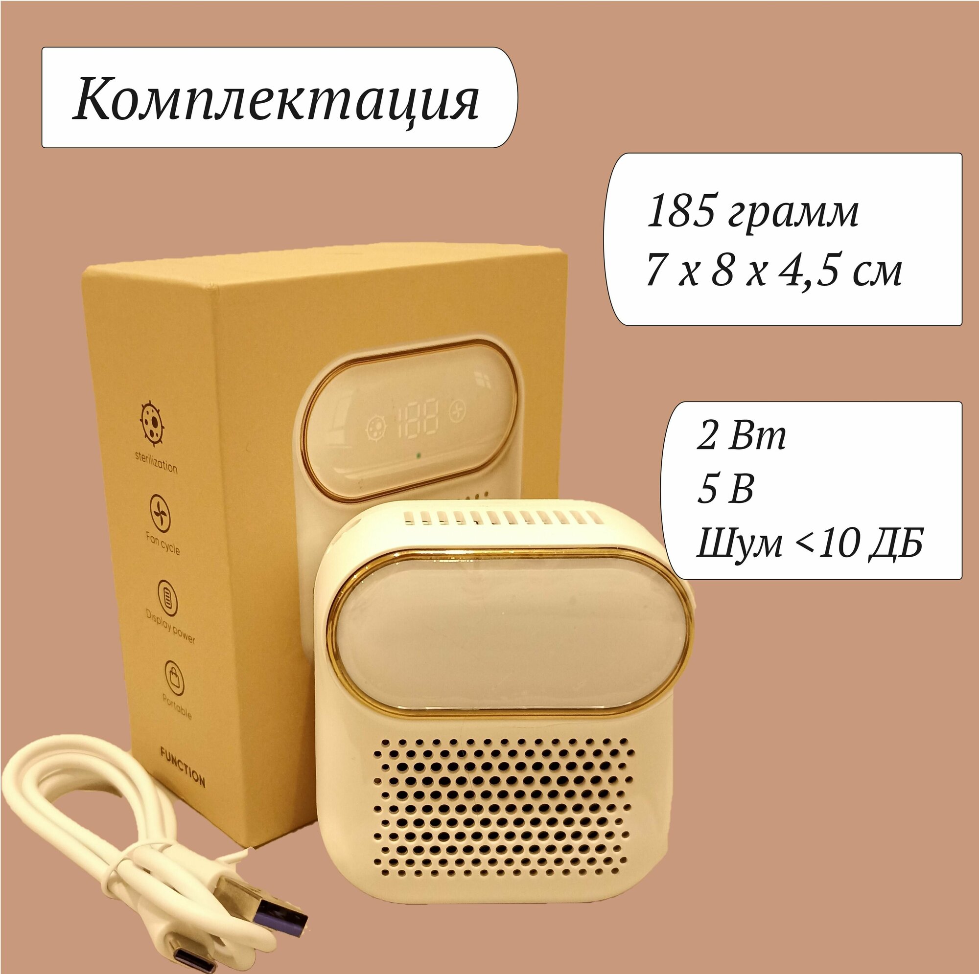 | Подробная комплектация | Озонатор-дезодоратор, кабель USB |
