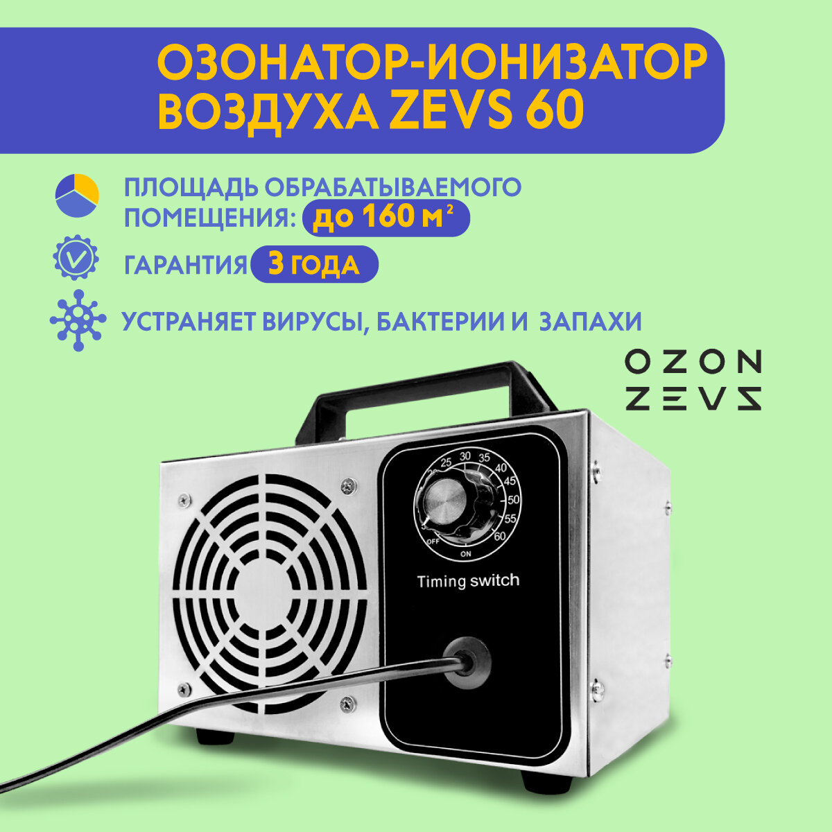 Озонатор ионизатор воздуха бытовой для дезинфекции помещений, домов площадью до 160 м2 60 грамм/час, очиститель воздуха