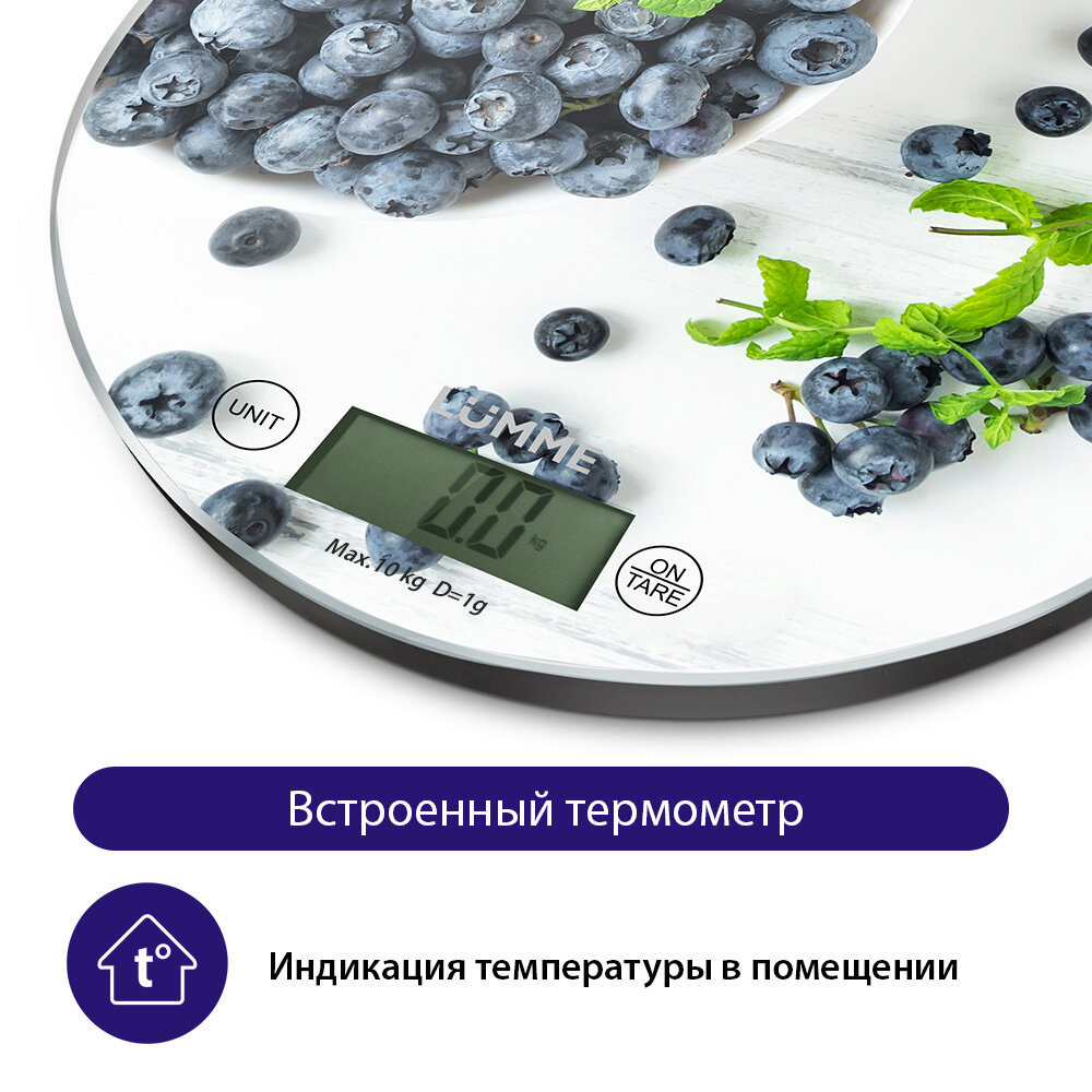 Купить Весы кухонные LUMME LU-1341 черничная россыпь сенсор, встроенный термометр