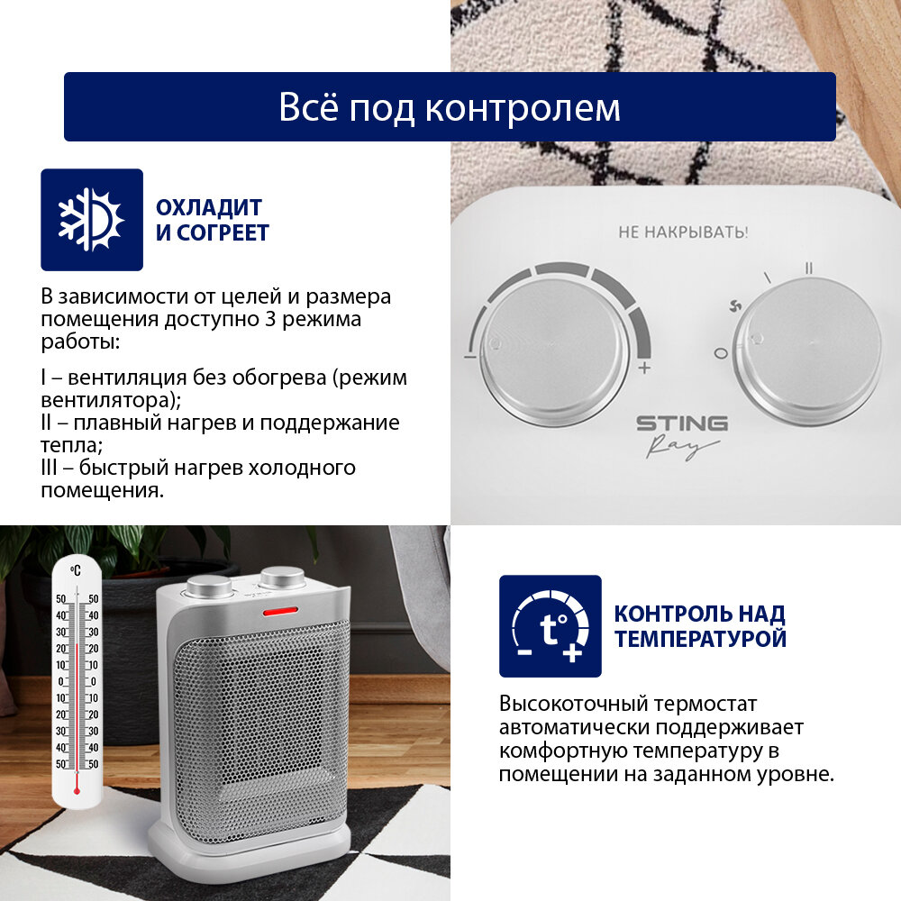 Тепловентилятор STINGRAY ST-FH1047A белый жемчуг интересное: