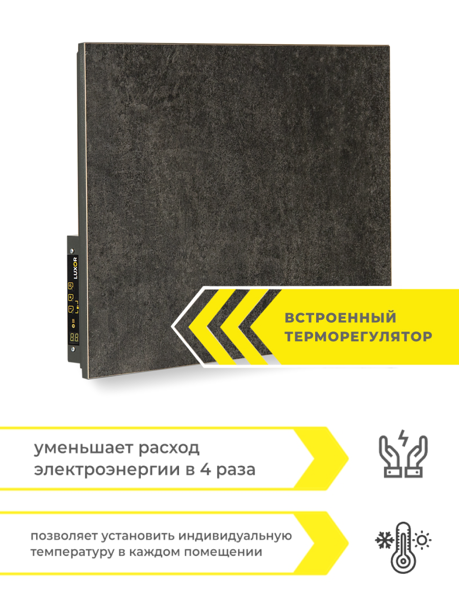 | Подробная комплектация | Обогреватель LUXOR, комплект для крепления к стене, паспорт товара, гарантийный талон |