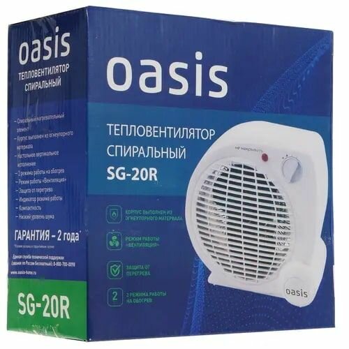 Ниже Вы можете прочитать отзывы на Тепловентилятор спиральный Oasis SG-20 R, 2,0 кВт, ознакомится с подробными характеристиками, посмотреть интересные обзоры и фотографии на Тепловентилятор спиральный Oasis SG-20 R, 2,0 кВт.