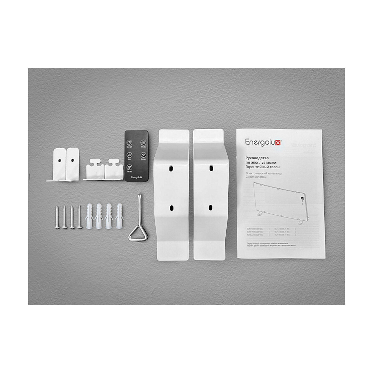 | Подробная комплектация | Конвектор, Пульт ДУ с батарейками, Ключ-отвертка для настенной установки, металлические опорные ножки, Руководство по эксплуатации, гарантийный талон. |