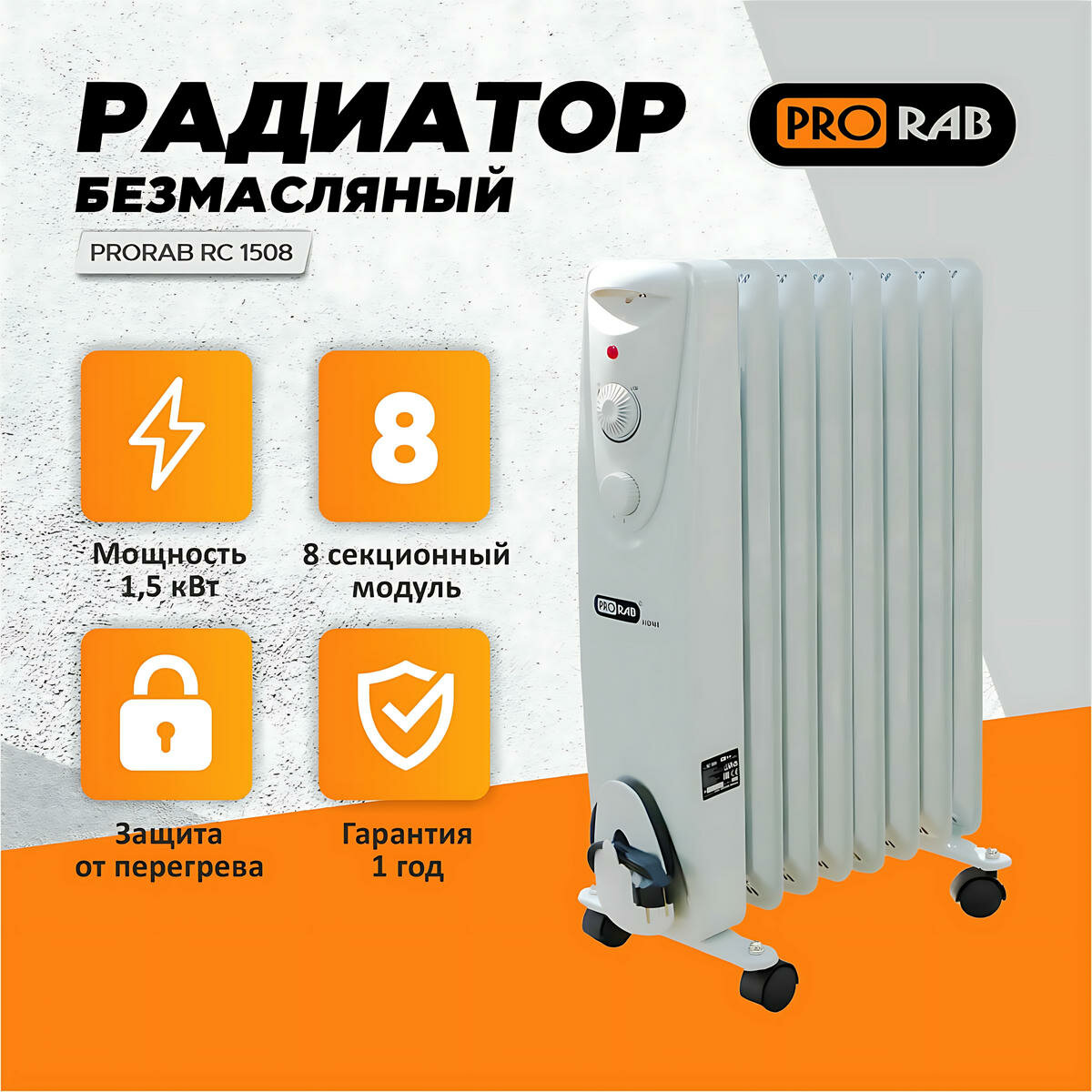 Радиатор безмасляный PRORAB RC 1508 интересное: