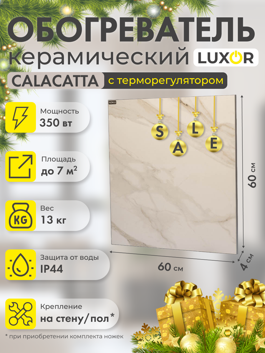 | Подробная комплектация | Обогреватель LUXOR, комплект для крепления к стене, паспорт товара, гарантийный талон |