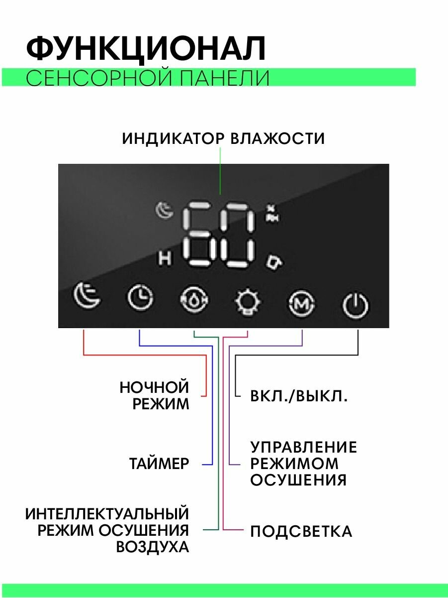 | Особенности | встроенный гигростат / дисплей / ручка для переноски / сенсорное управление |