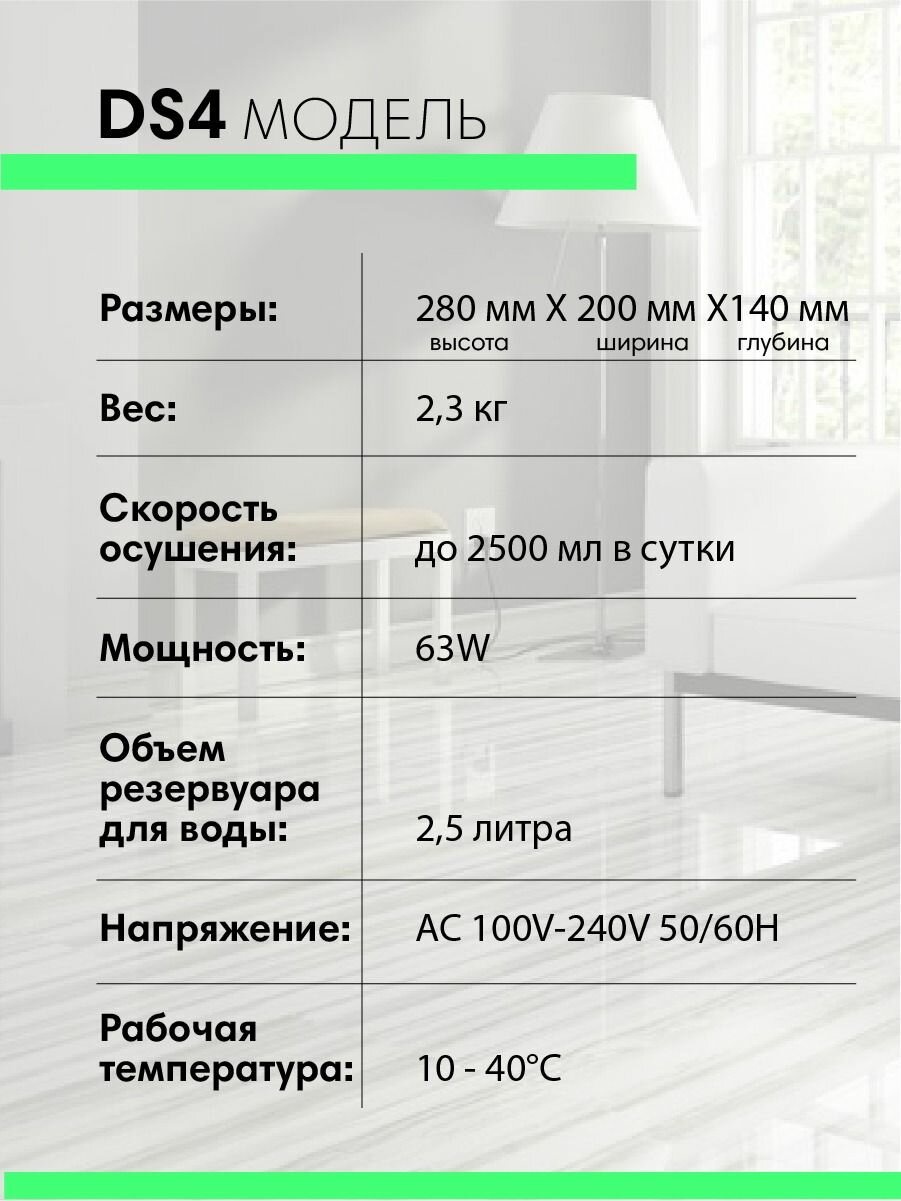 | Комплектация | Осушитель воздуха, шнур питания, инструкция. |