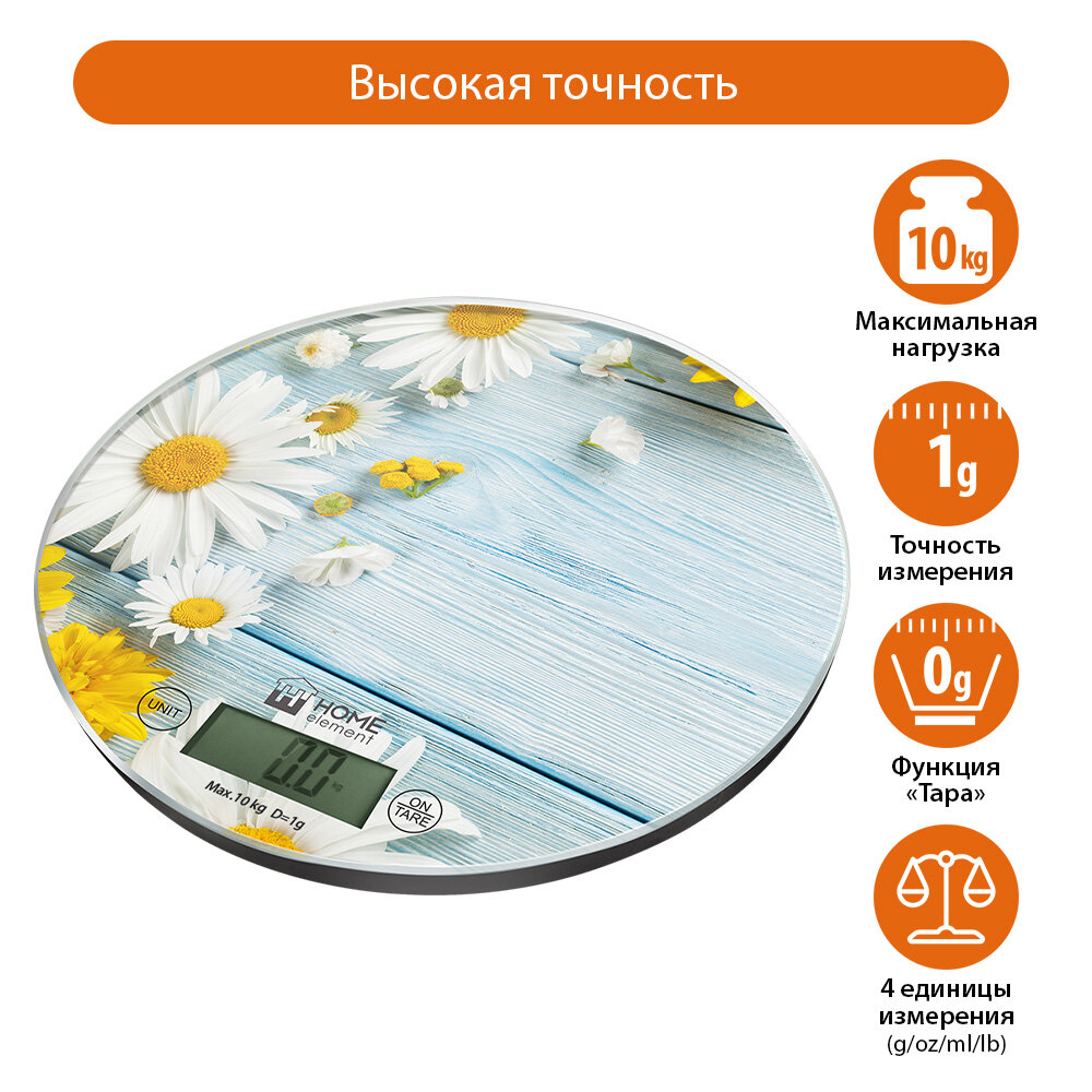 Весы кухонные HOME ELEMENT HE-SC933, летние цветы