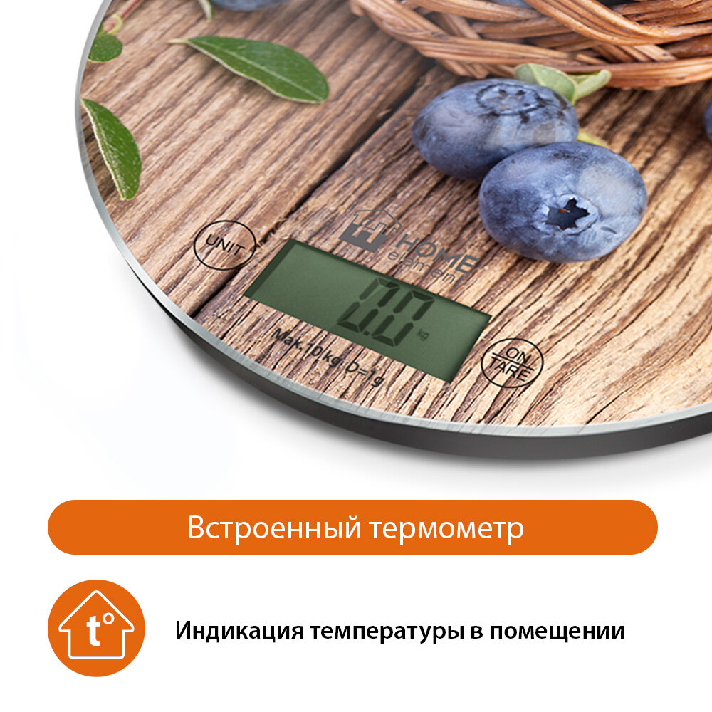 Купить Весы кухонные HOME ELEMENT HE-SC933 черничная россыпь сенсор, встроенный термометр