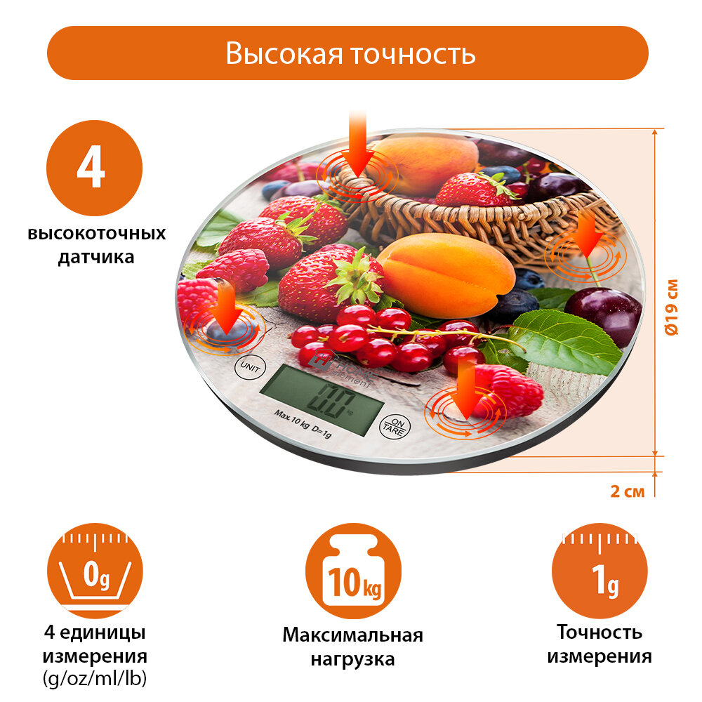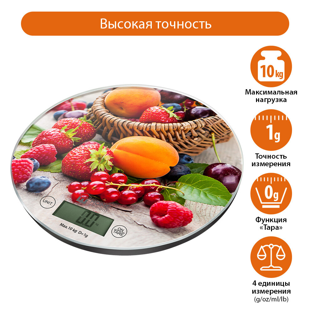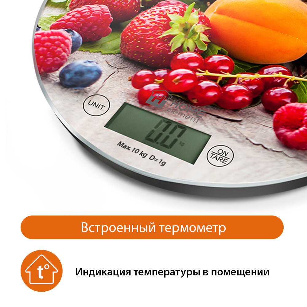 Весы кухонные HOME ELEMENT HE-SC933 ягодный микс сенсор, встроенный термометр