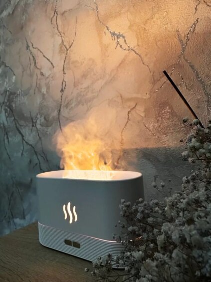 Аромадиффузор Увлажнитель воздуха для дома камин Увлажнитель в виде огня белый интересное: