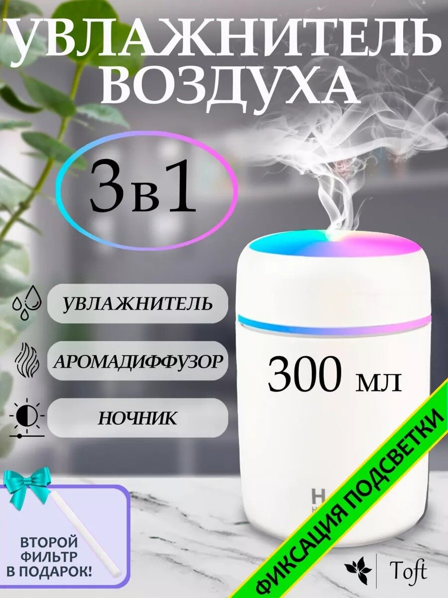 Ультразвуковой увлажнитель воздуха с подсветкой и ароматизацией, 300 мл