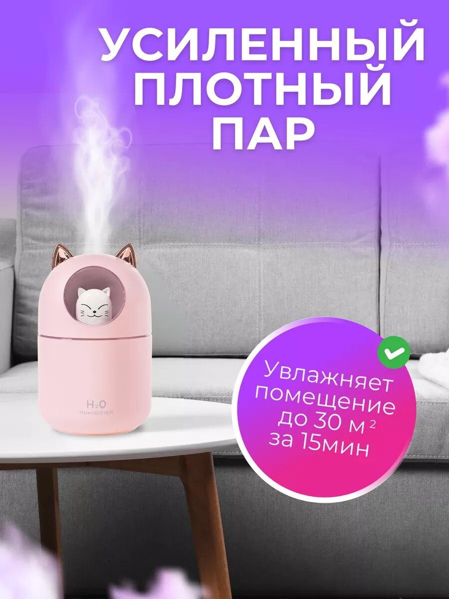 Купить Увлажнитель воздухамини котик, портативный увлажнитель с LED подсветкой, Аромадиффузор, розовый