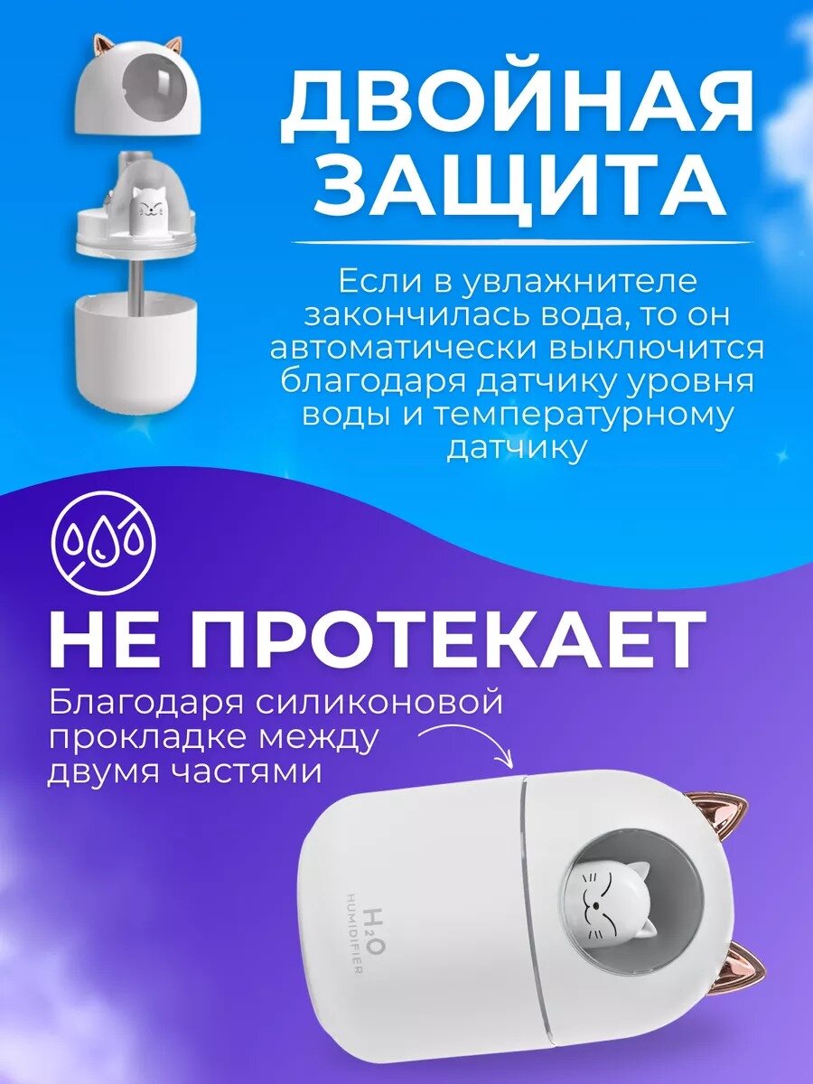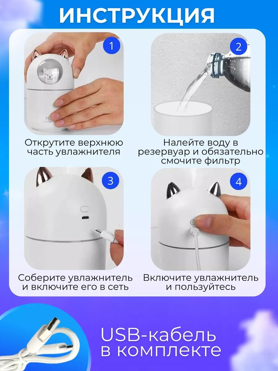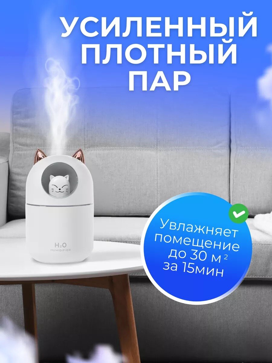 СохранитьУвлажнитель воздуха мини котик, портативный увлажнитель с LED подсветкой, Аромадиффузор, белый интересное: