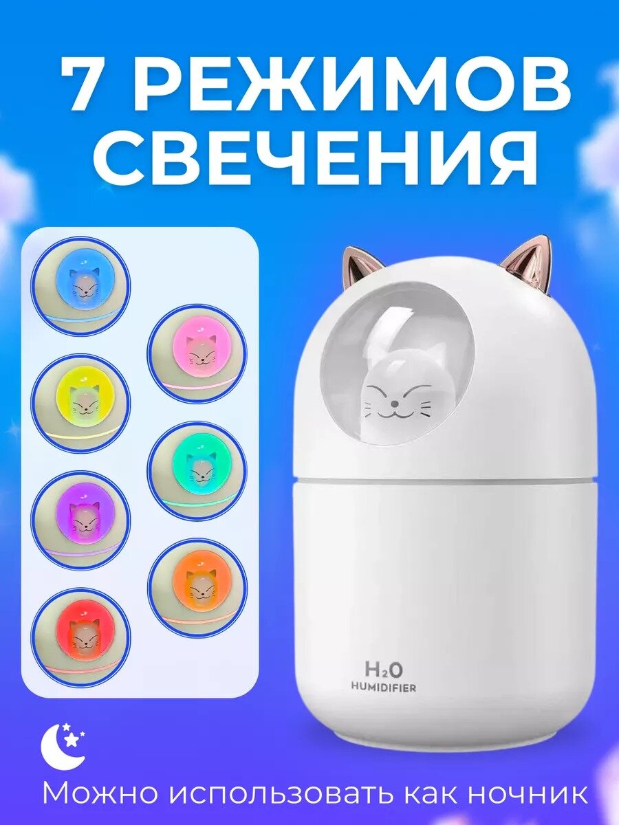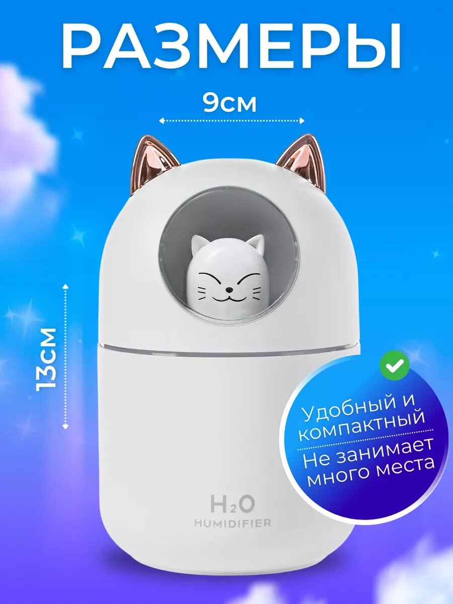 Купить Увлажнитель воздуха мини котик, портативный увлажнитель с LED подсветкой, Аромадиффузор, белый