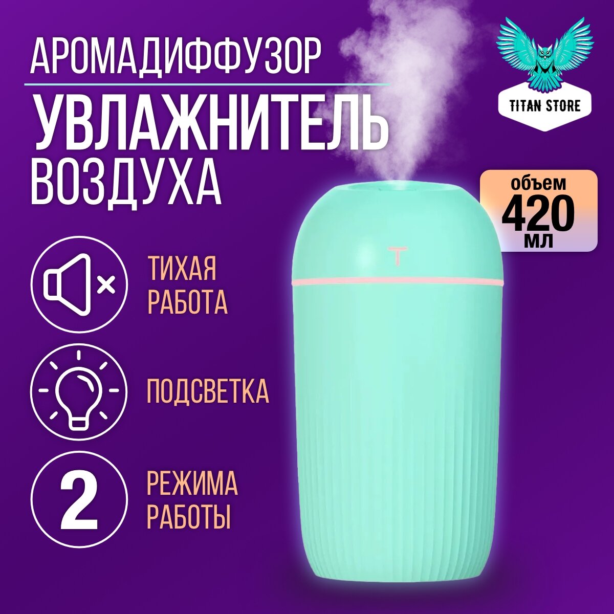 Увлажнитель воздуха/Аромадиффузор, объем, мл: 420, зеленый интересное: