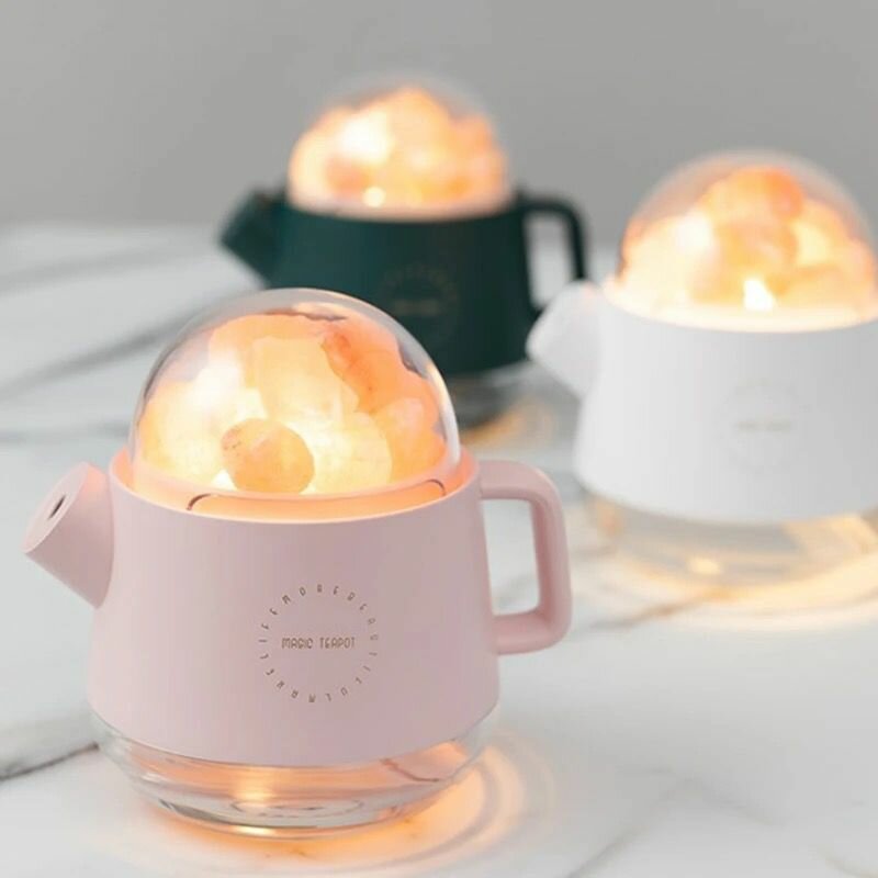 Увлажнитель воздуха в виде чайника с соляными минералами. Белый
