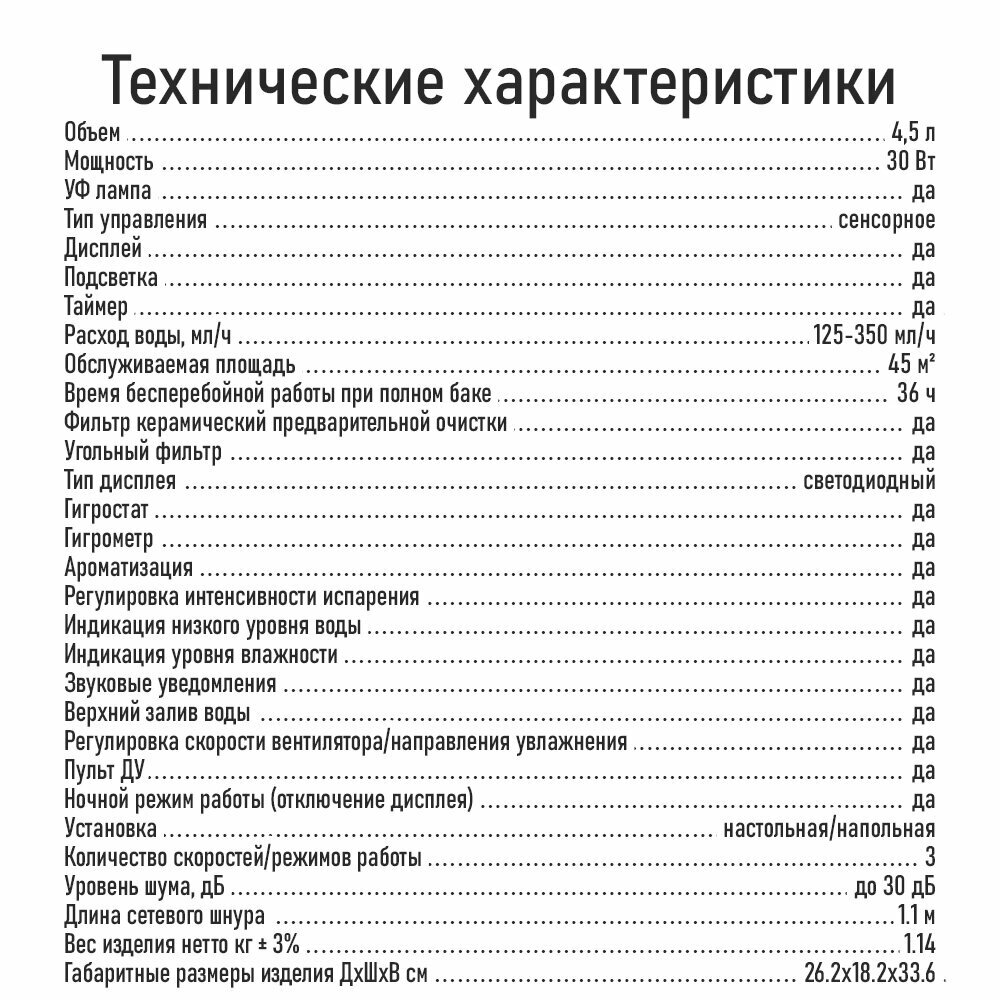 | Тип увлажнителя | ультразвуковой |