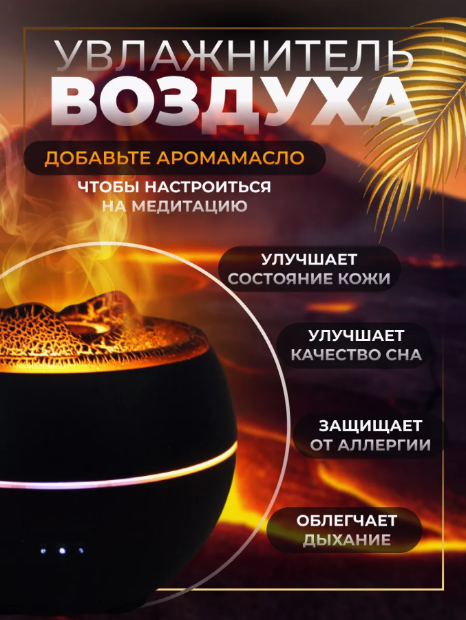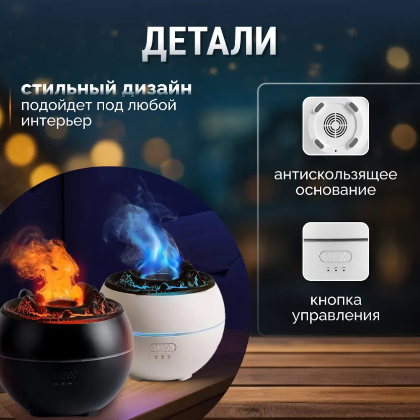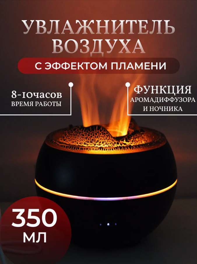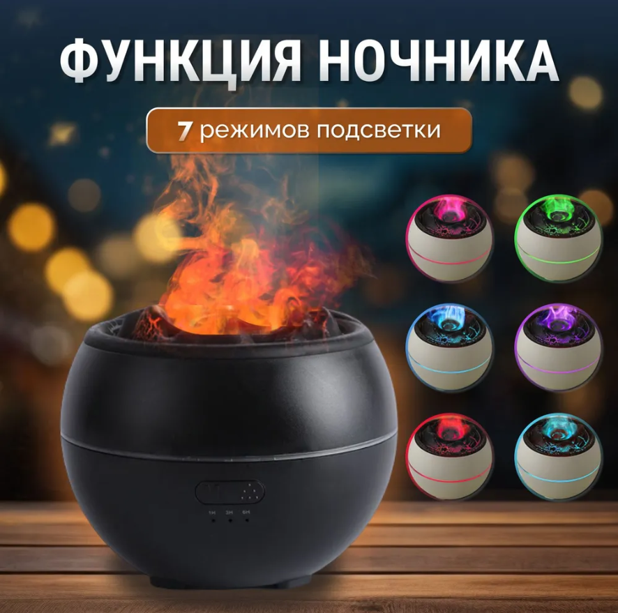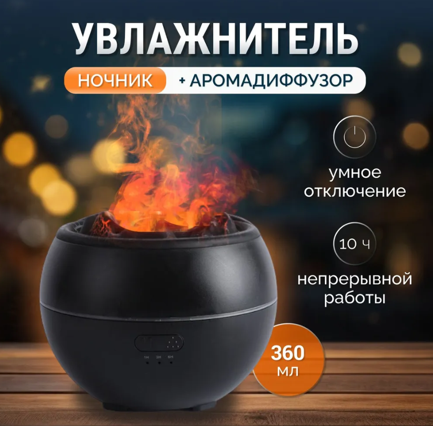 Аромадиффузор с эффектом пламени, увлажнитель воздуха черный интересное: