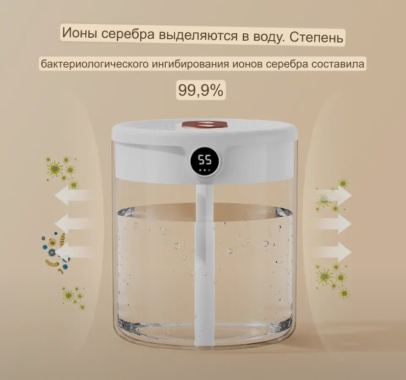 Увлажнитель воздуха Н2О / Увлажнитель на 2 л / Увлажнитель с двойным соплом и дисплеем влажности от GadFamily интересное: