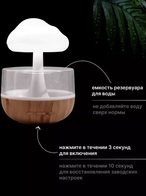 СохранитьУвлажнитель воздуха Гриб с функцией аромадиффузора и ночника с подсветкой / Эффект дождя/Белый интересное: