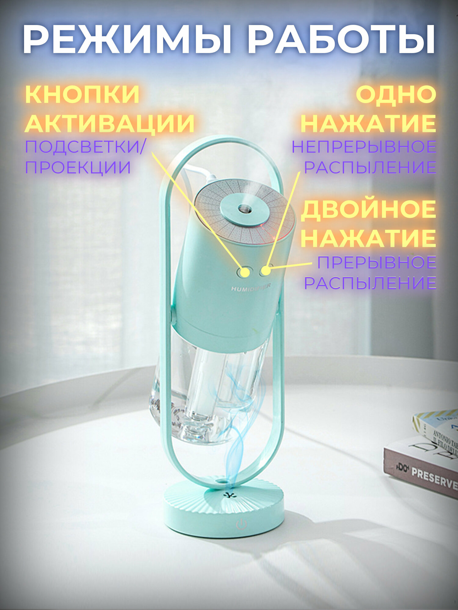 Купить Увлажнитель-ароматизатор воздуха ночник светильник, голубой