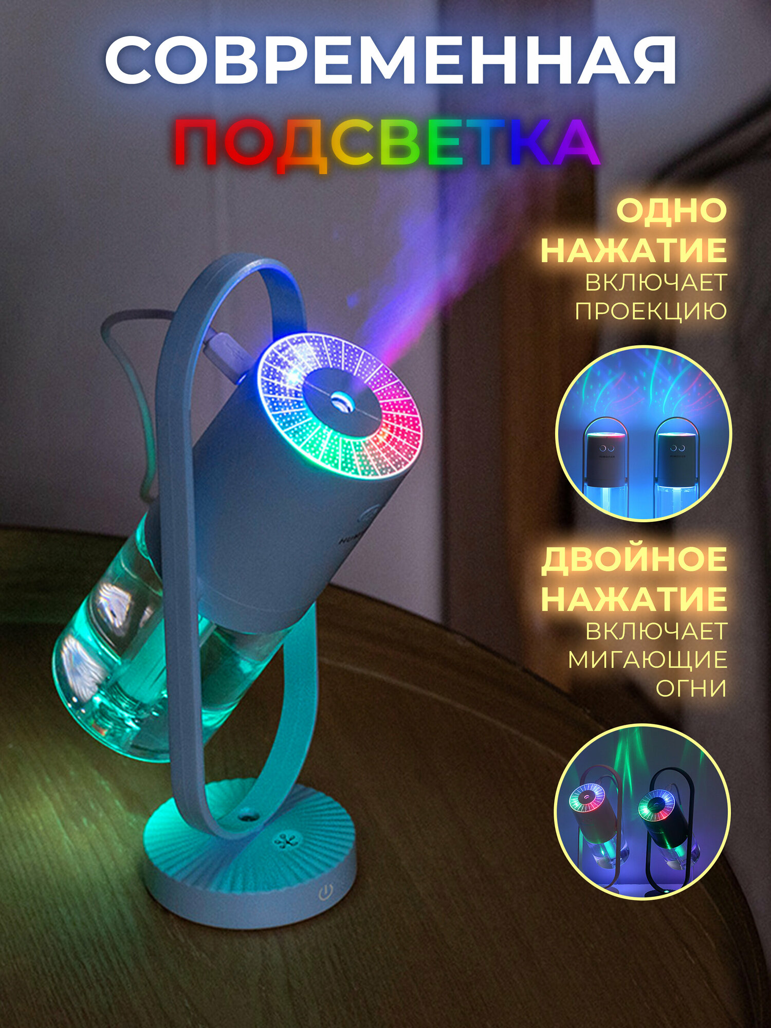 Увлажнитель-ароматизатор воздуха ночник светильник, голубой интересное: