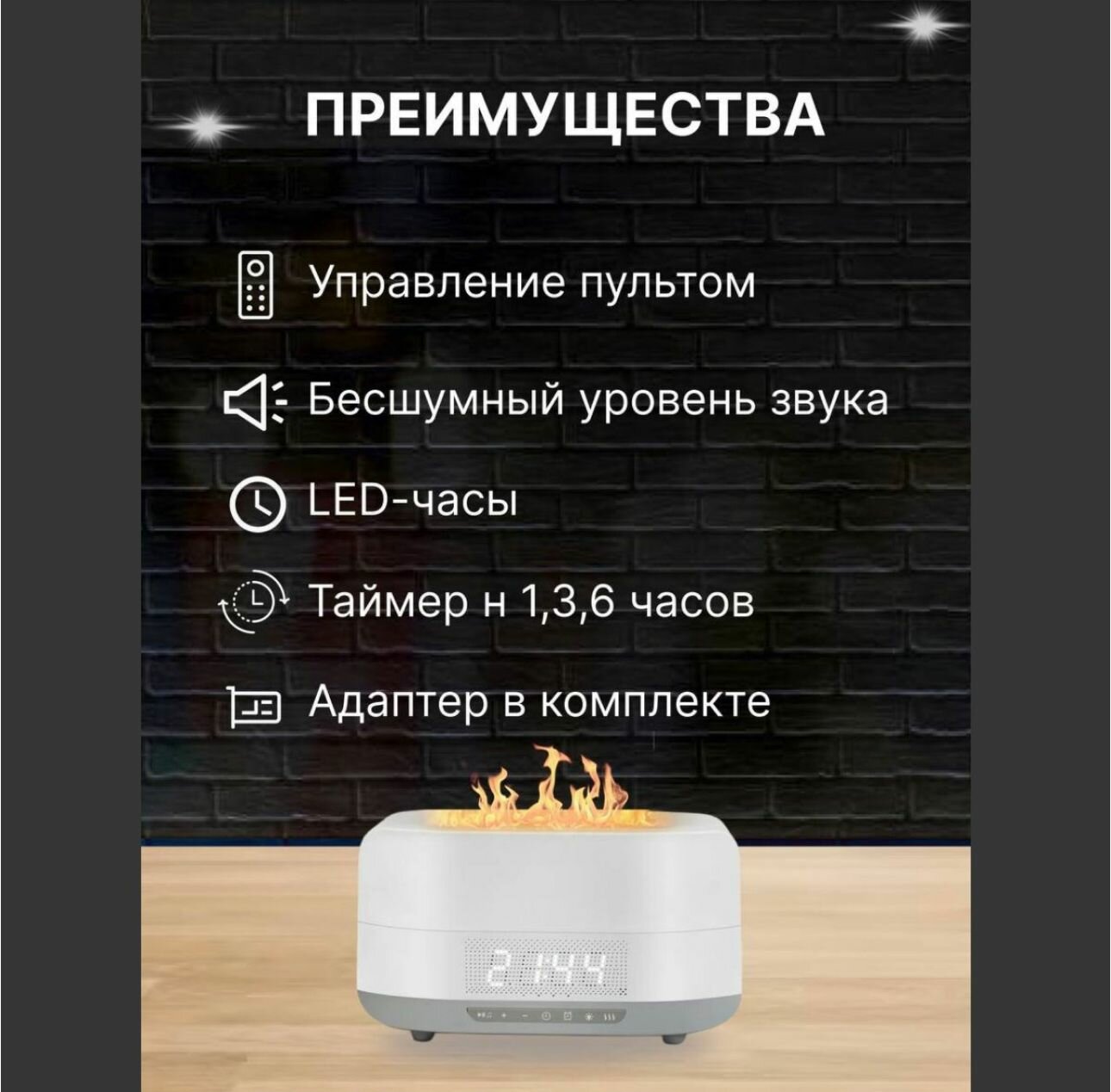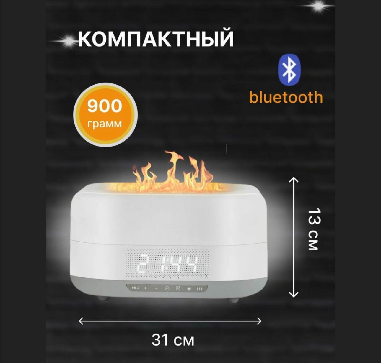 Увлажнитель-аромадиффузор, колонка с эффектом пламени белый интересное: