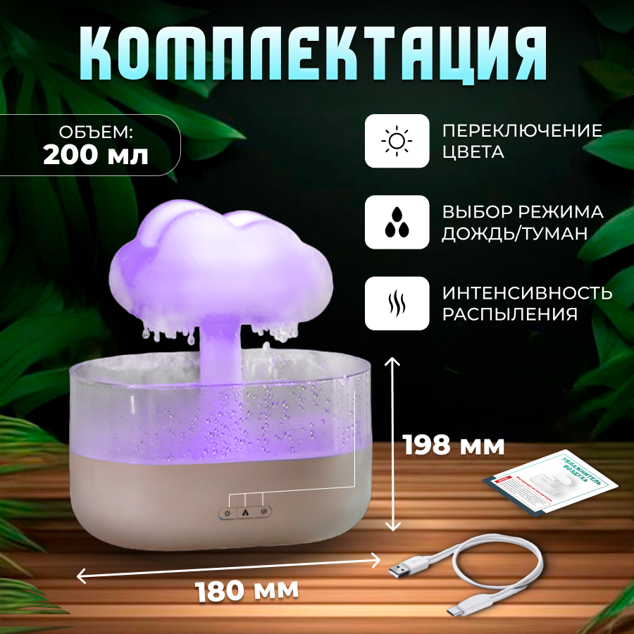 | Подробная комплектация | Аромадиффузор 1 штука, USB-провод 1 штука, Инструкция 1 штука |