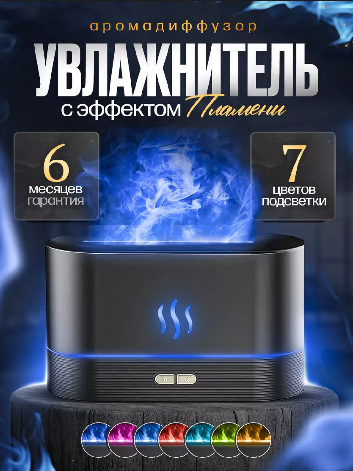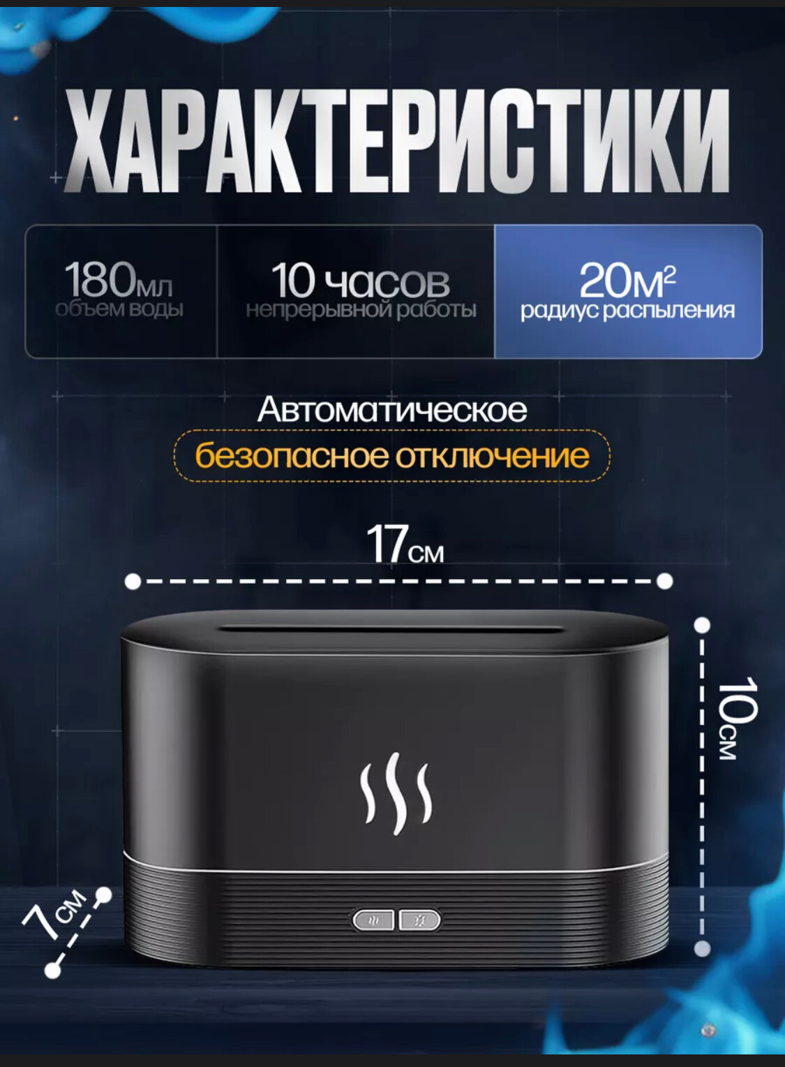 Увлажнитель воздуха с ароматизацией и подсветкой, объем воды 180мм , черный интересное: