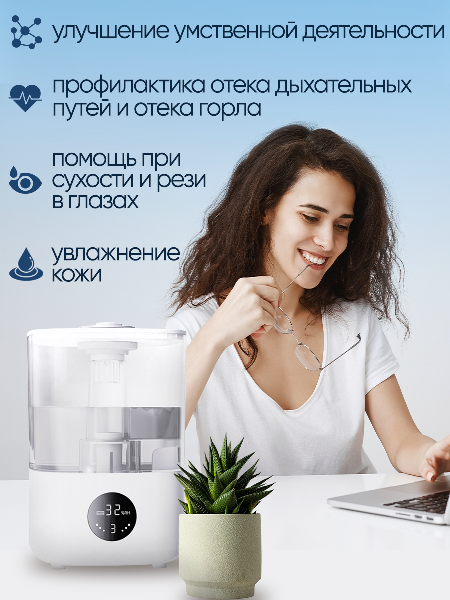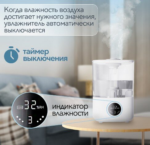 | Дополнительная информация | оснащен емкостью 2.5 литра, что позволяет ему работать на протяжении длительного времени без необходимости пополнения воды. |
