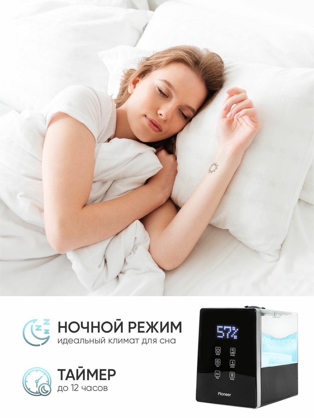 Ультразвуковой увлажнитель воздуха Pioneer HDS12 6 л, c сенсорной панелью и аромакапсулой, верхний долив, функция теплый ПАР