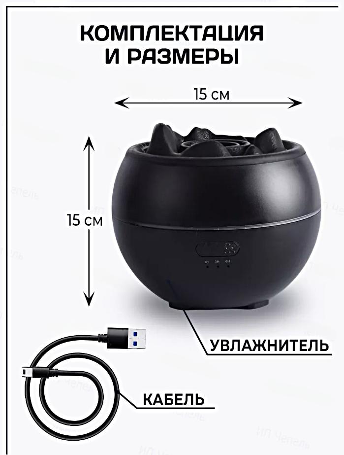 Увлажнитель воздуха с подсветкой Вулкан круглый, Ультразвуковой аромадиффузор ночник для дома, 360мл, Черный интересное: