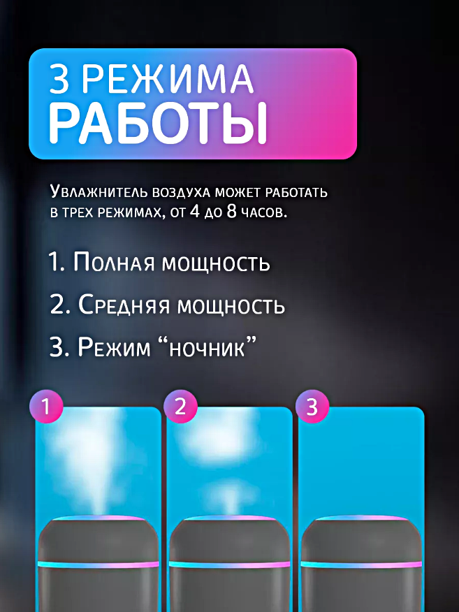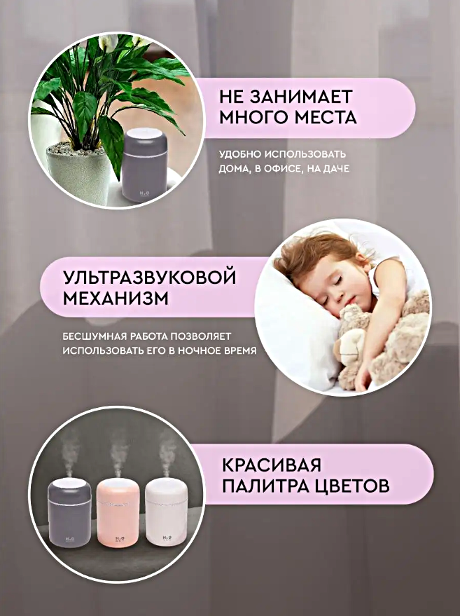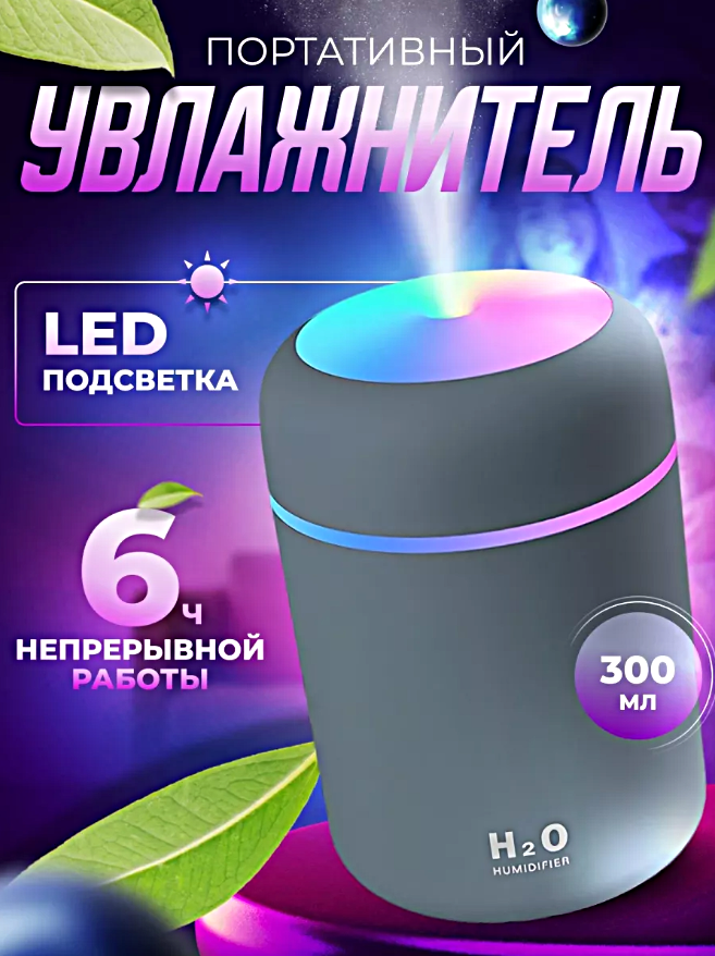 Увлажнитель воздуха ультразвуковой, Аромадиффузор с подсветкой, Увлажнитель воздуха ночник для дома, Серый интересное: