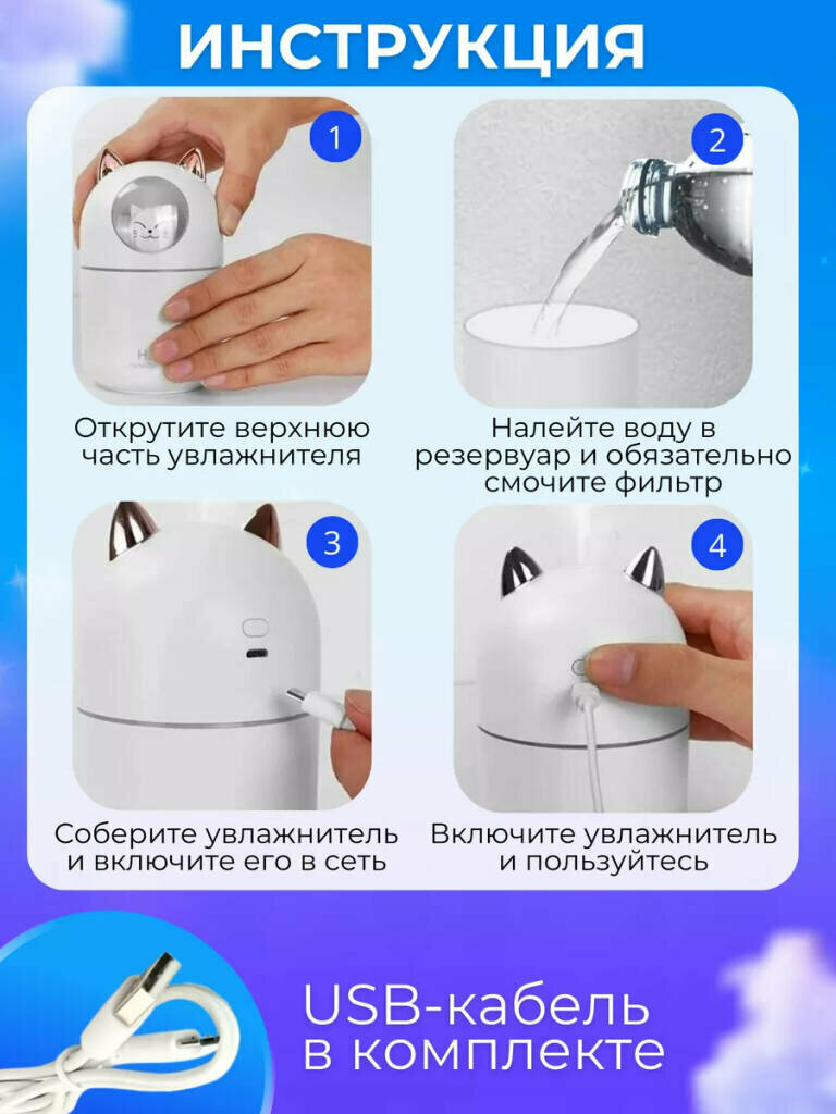 Увлажнитель воздуха Котик H2O ультразвуковой,белый от Sark-Shop интересное: