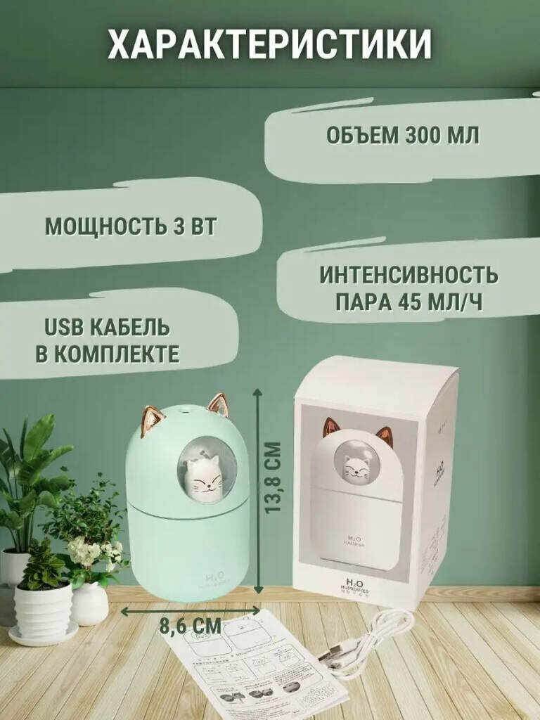 Увлажнитель воздуха Котик H2O ультразвуковой,зеленый от Sark-Shop интересное: