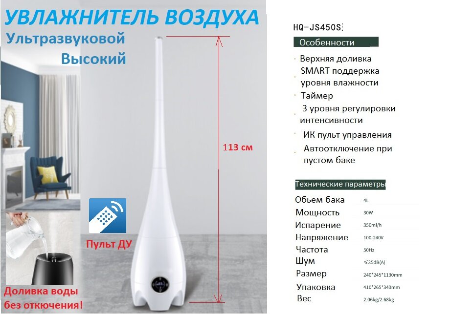 | Особенности | гигростат / дисплей / индикация работы / таймер / увлажнитель |