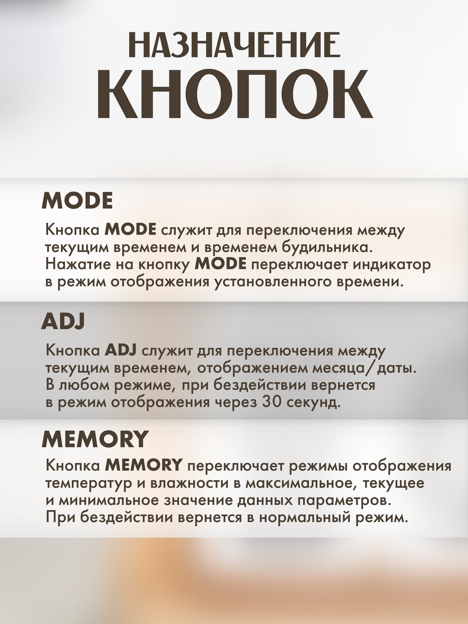 | Измерения | влажность в помещении / влажность на улице / температура в помещении / температура на улице |