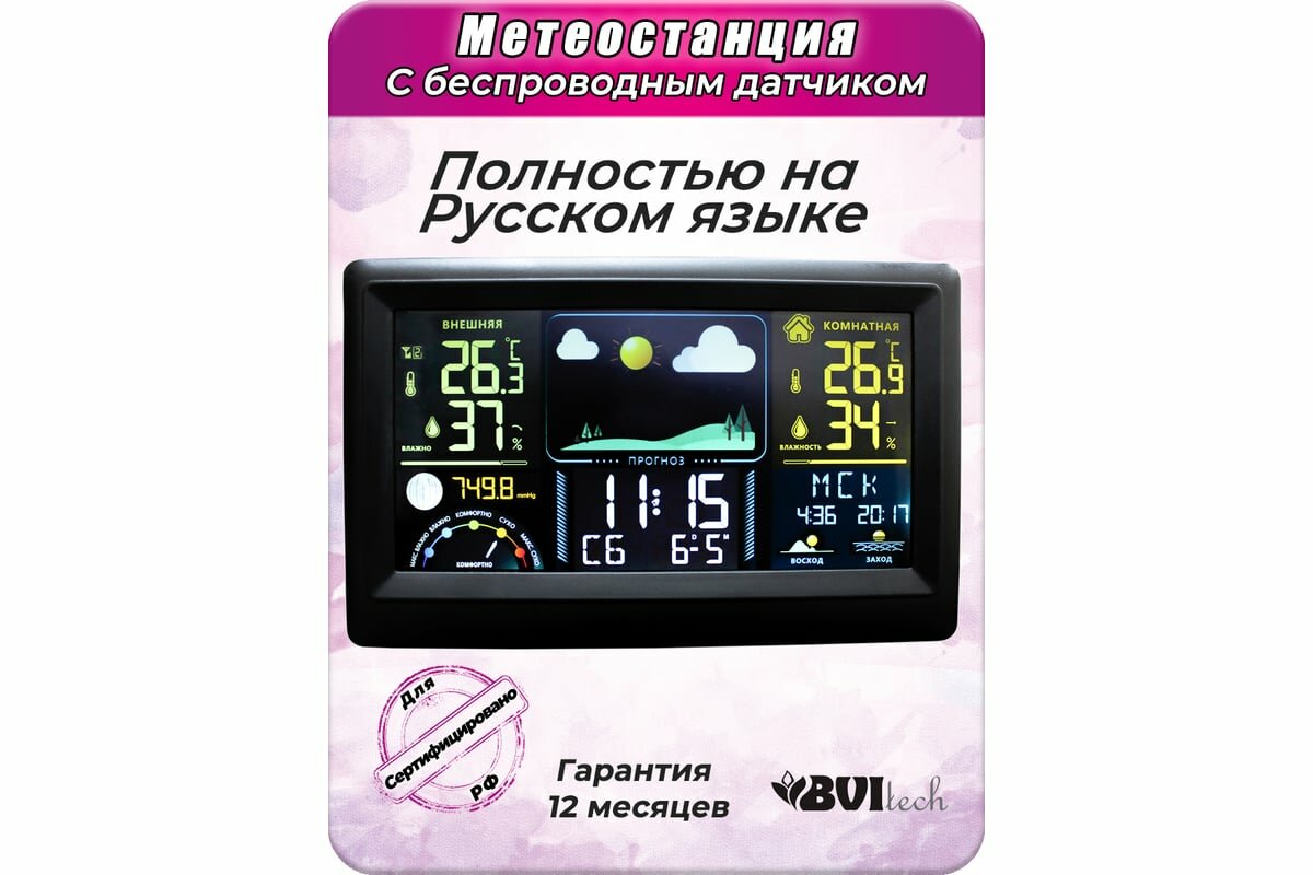 Метеостанция BVItech BV-677, черная, с беспроводным датчиком
