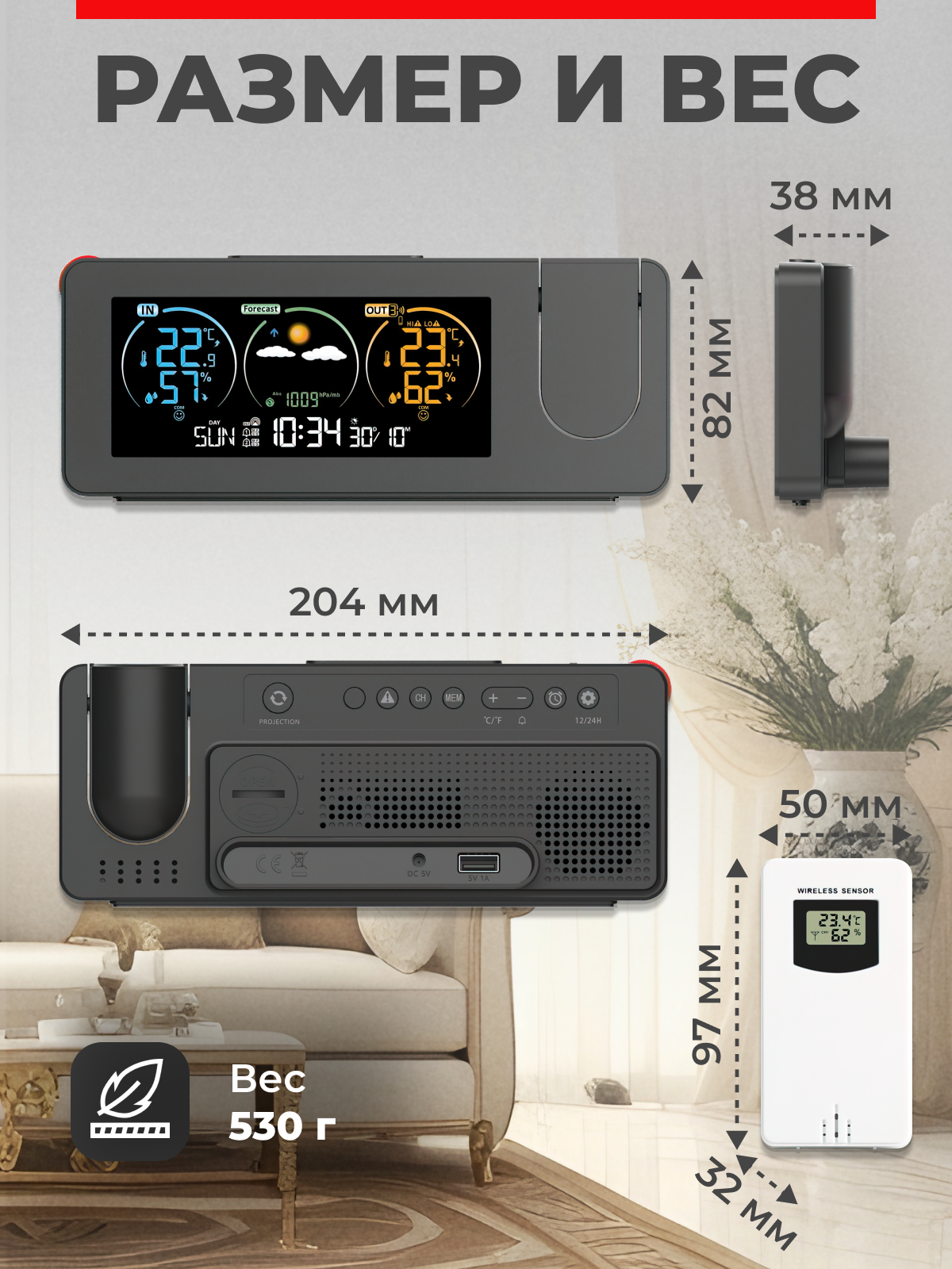 | Измерения | влажность в помещении / влажность на улице / давление / температура в помещении / температура на улице |