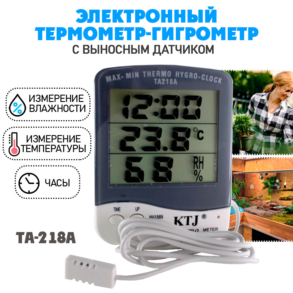 Термометр/ термометр гигрометр цифровой / выносной датчик/ TA-218A цвет белый интересное: