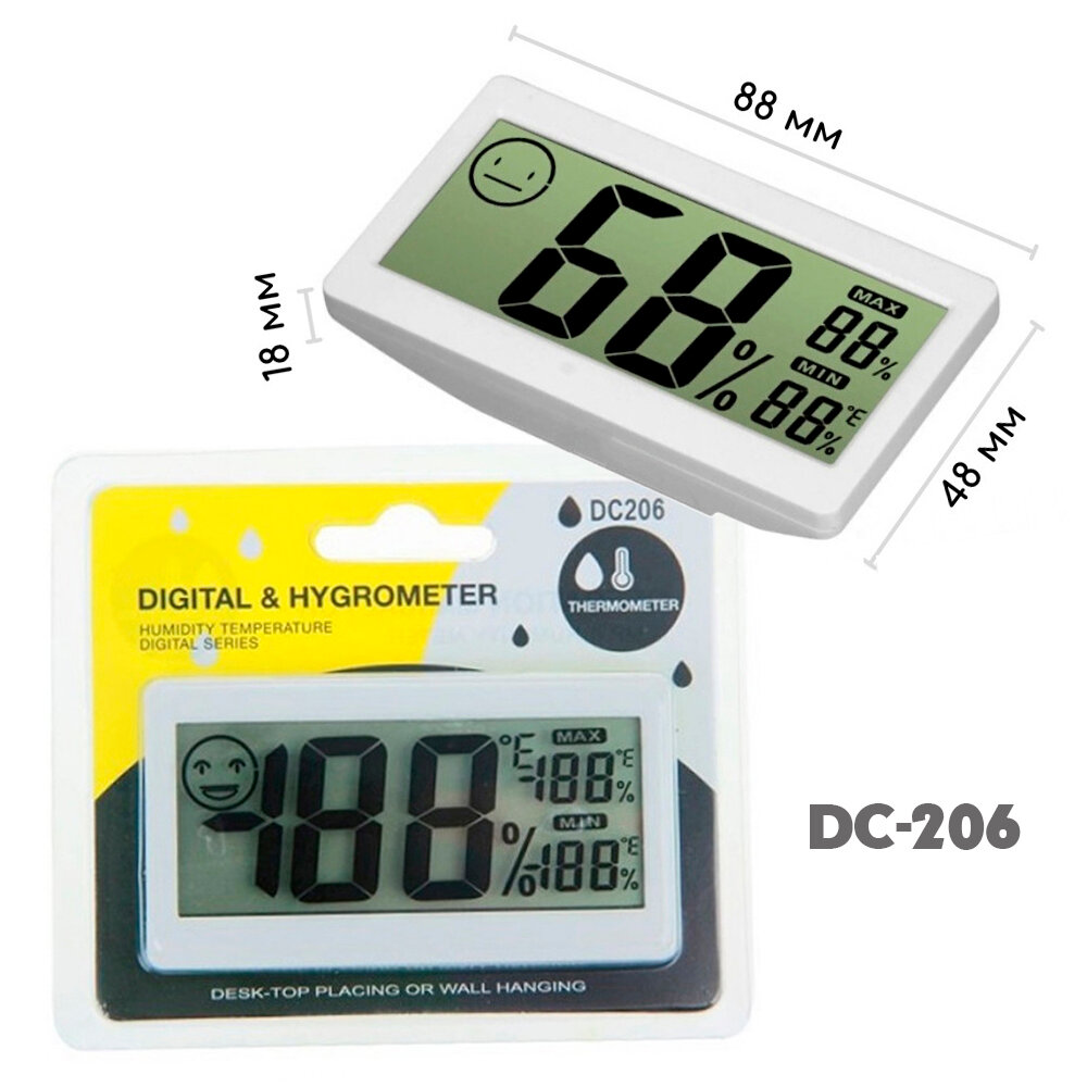 Купить Термометр-гигрометр электронный, DC 206, ЖК дисплей без выносного датчика