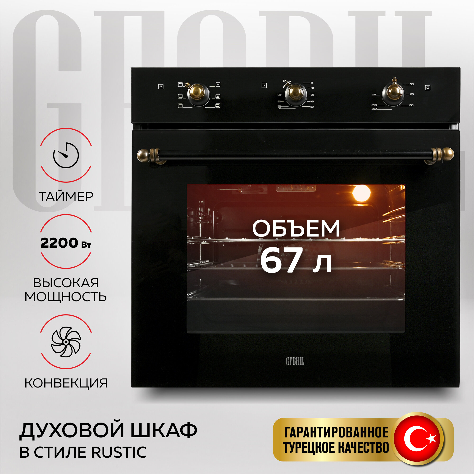 Купить GFGRIL Духовой шкаф электрический встраиваемый GF-EO400B, Rustic, 67 л, 6 программ, конвекция, таймер, гриль, цвет черный