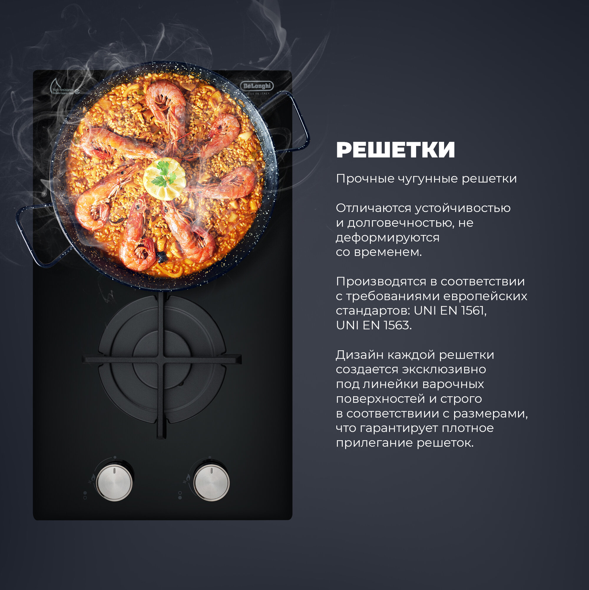 Газовая варочная панель DeLonghi, NSL 230 NC RUS, 30 см, черное стекло, повышенная мощность 300Вт, чугунные решетки, автоматический розжиг, газ-контроль интересное: