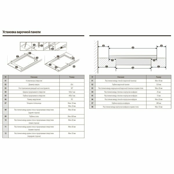 | Безопасность | защитное отключение конфорок / индикатор остаточного тепла / кнопка блокировки панели |