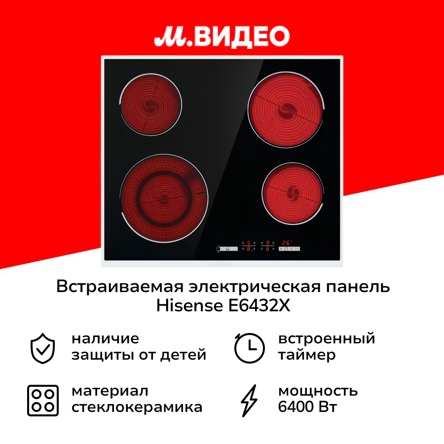 Встраиваемая электрическая панель Hisense E6432X интересное: