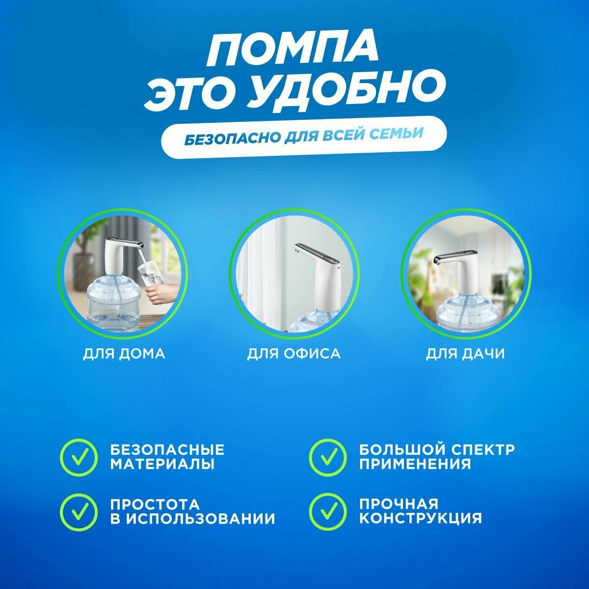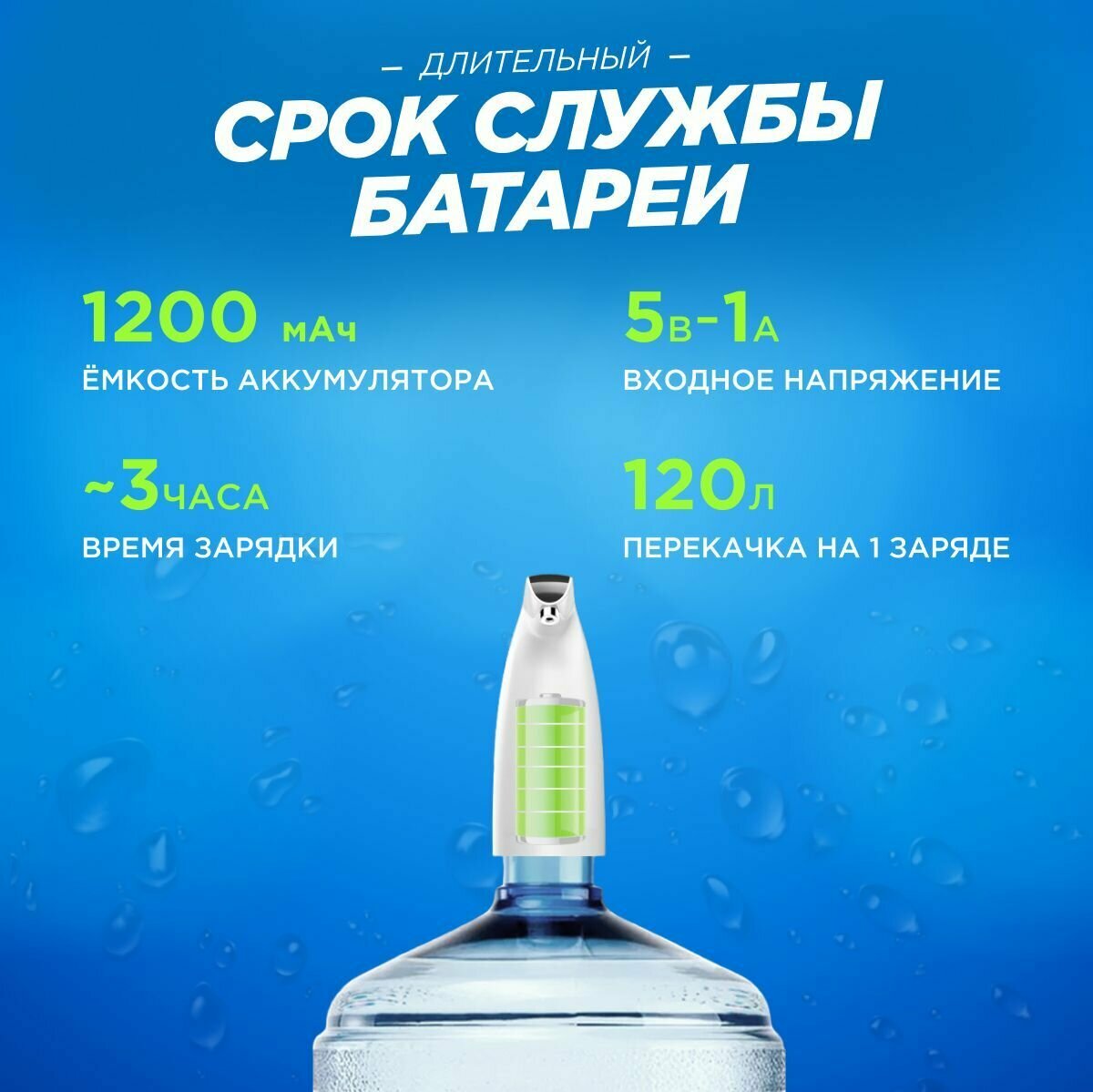 | Дополнительная информация | электропомпа автоматическая с аккумулятором для бутилированной воды с индикацией качества воды |